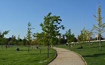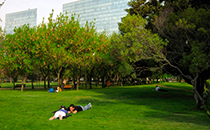 Extensión: por Av. Tupper recorriendo los jardínes interiores o bordeando el parque por la Autopista Central.